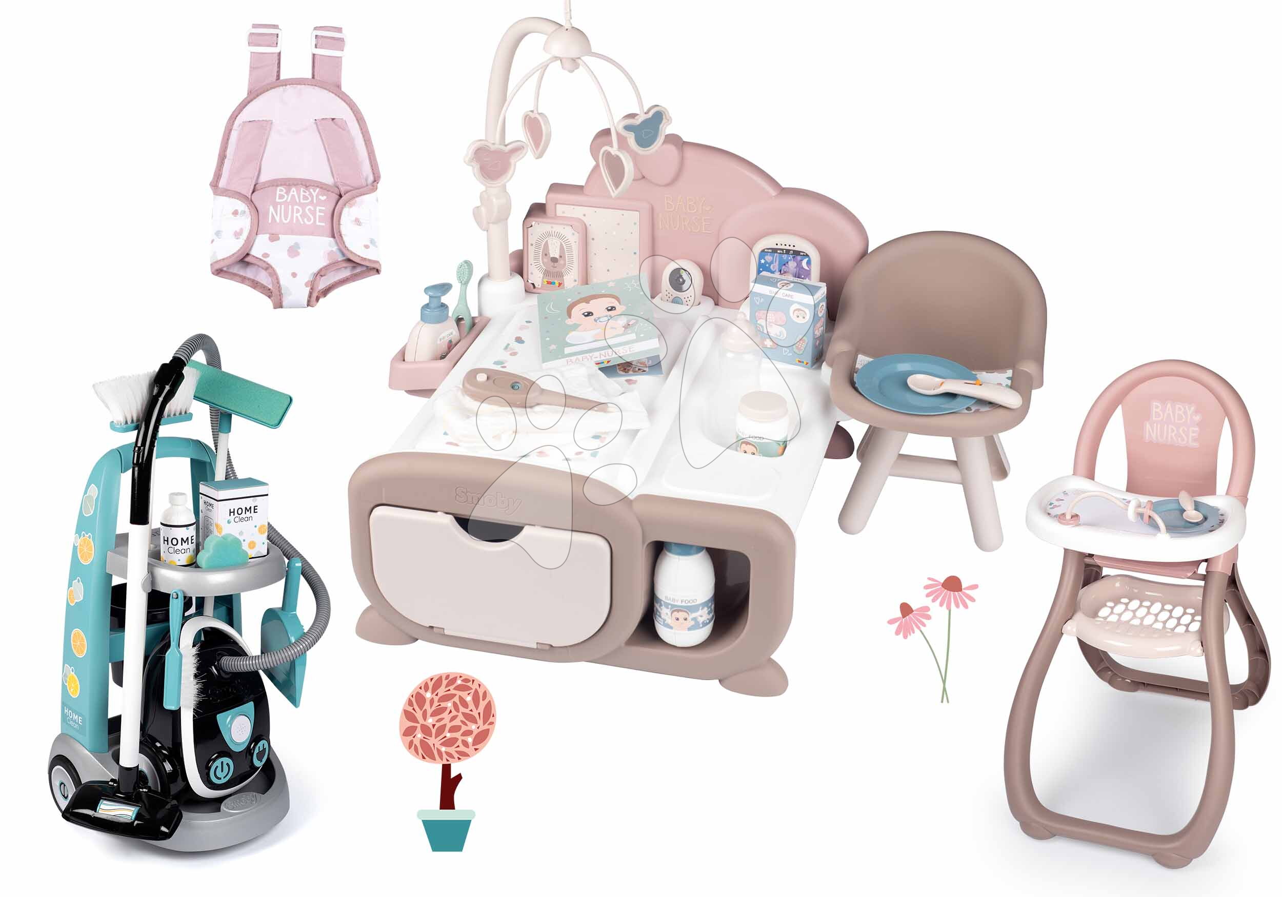 Set úklidový vozík s elektronickým vysavačem Smoby a pečovatelské centrum s panenkou, jídelní stoličkou a klokankou je moderní souprava hraček pro šikovné děti od 3 let, které rády pomáhají svým rodičům při úklidu a touží po doplňcích pro své panenky. Zvýhodněný set hraček vám výrazně ušetří peníze při nákupu a zároveň budete mít krásné dárky pro své děti od francouzské společnosti Smoby, která je známá těmi nejlepšími produkty pro děti. Hračky v setu spolu ladí a tvoří pěkný doplněk do dětského pokojíčku. Děti si s hračkami vydrží hrát velmi dlouho a při hře se jim snadněji rozvíjí jemná motorika, dovednosti a schopnosti. Set hraček je vhodný i pro hru více dětí, sourozenců a kamarádů.